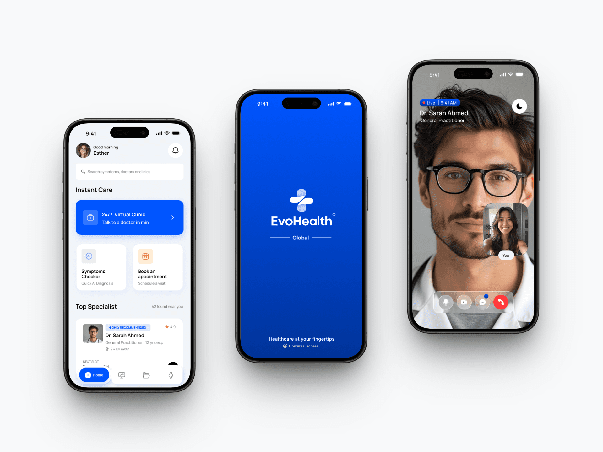 The EvooHealth app enables users to consult certified doctors through secure video and chat sessions, analyze symptoms using AI assistance, and monitor vital health metrics in one unified platform. The design prioritizes clarity, accessibility, and trust, ensuring users can manage their health efficiently without the need for physical hospital visits. Special attention was given to creating a calm visual language, intuitive navigation, and a scalable design system suitable for both iOS and Android platforms