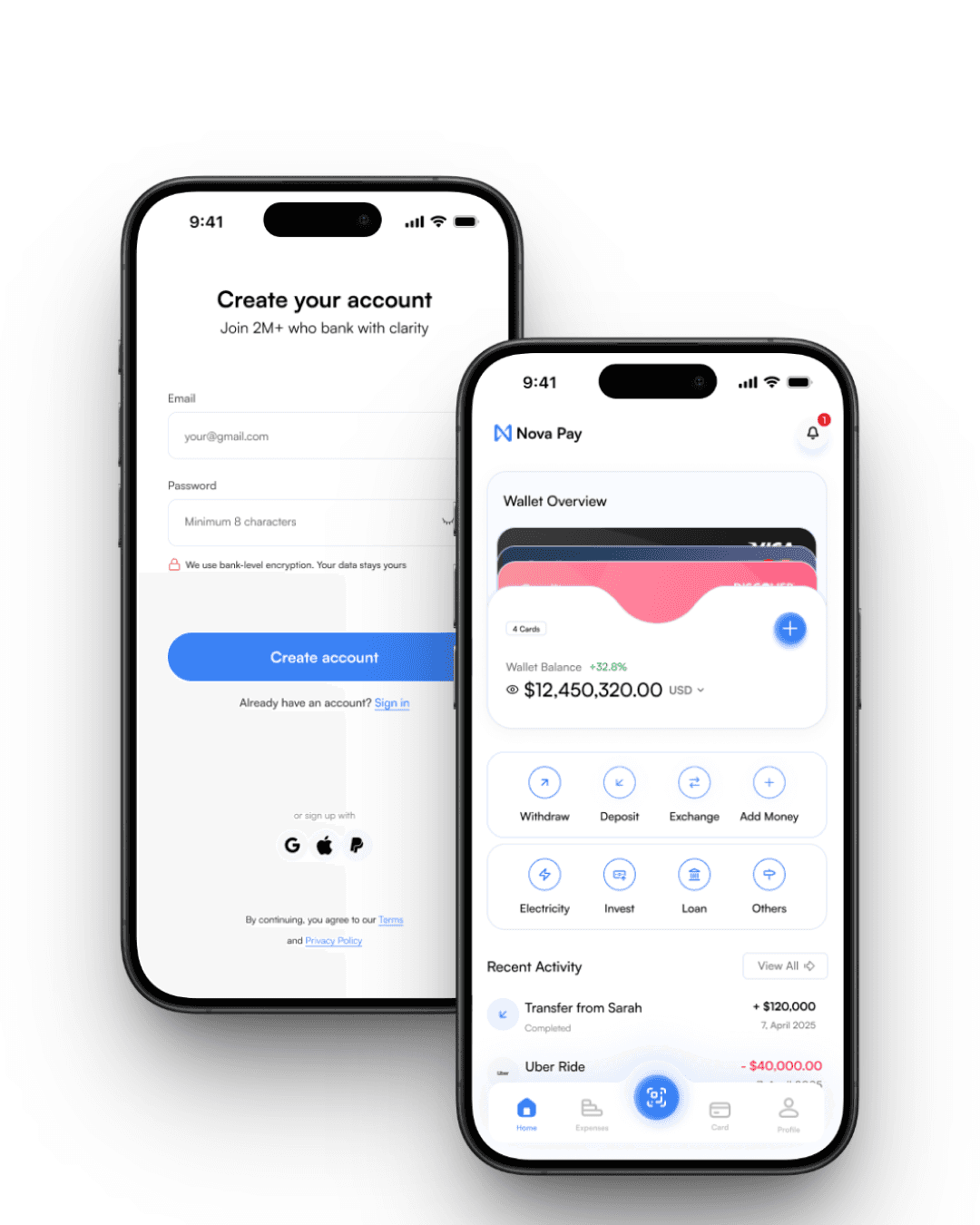 When tackling Nova Pay’s onboarding flow, I found myself obsessing over every detail. The biggest friction point for users wasn't the information they had to provide—it was how intimidating financial forms could feel. By decluttering the interface, focusing on essential fields, and using soft typography, I aimed to make the process approachable. I purposely left generous whitespace between form elements to reduce cognitive load, giving users visual resting points. These seemingly small choices can have quietly profound effects on first impressions.